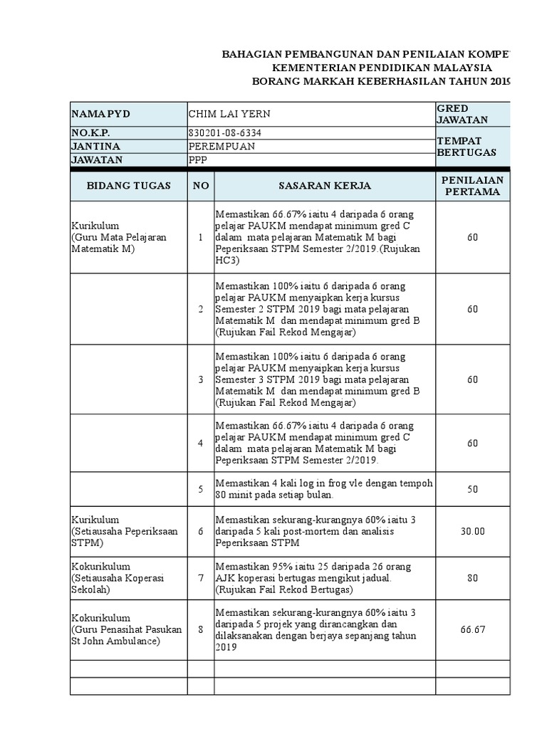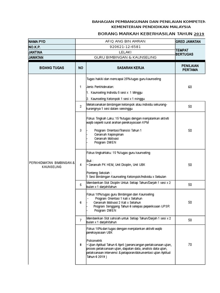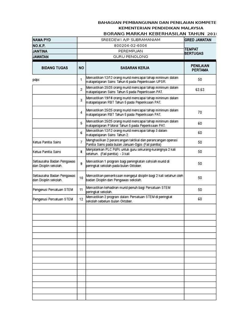 Borang Keberhasilan Contoh Penulisan Bk Xlsx Penilaian Bersepadu Pegawai Perkhidmatan Pendidikan Borang Keberhasilan Tahun 2018 Nama Pyd Norhaslina Course Hero