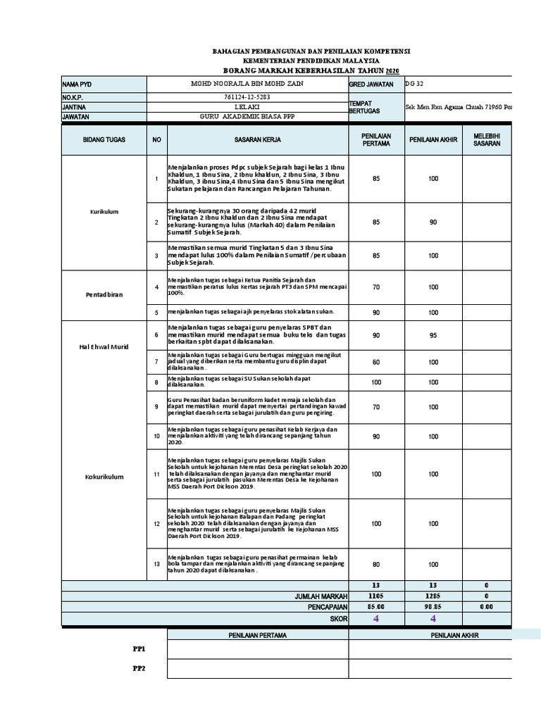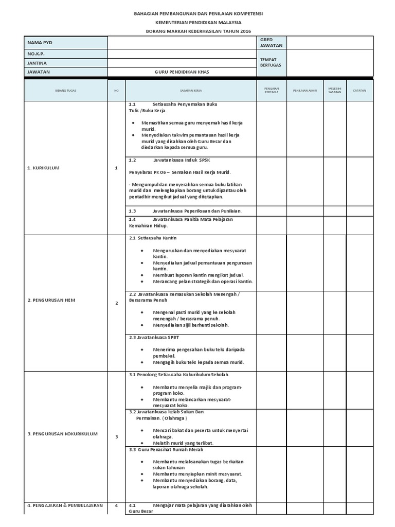 Contoh Borang Keberhasilan Guru Cemerlang Nama Pyd Gred Jawatan No K Jantina Jawatan Bidang Tugas Studocu